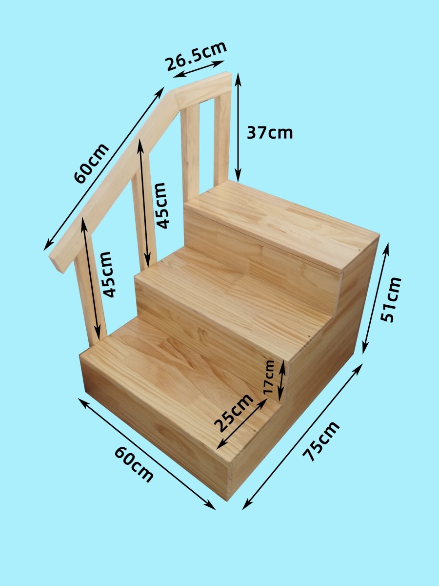 梯長75厘米,梯寬60厘米(不含扶手),梯高88厘米(含扶手)